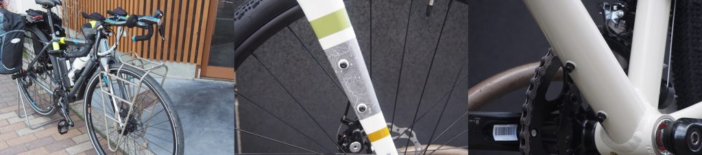 前後のフェンダーやキャリアのダボ穴はもちろん、フォーク横や、ダウンチューブ裏など通常のロードバイクにはない部分にまでボトル台座などを用意。行く道、距離などに応じ必要なアイテムもスムーズに取り付けるカスタムが可能です。
