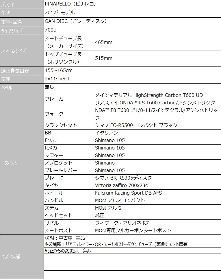 【中古】【2017年モデル】【PINARELLO / ピナレロ】GAN DISC