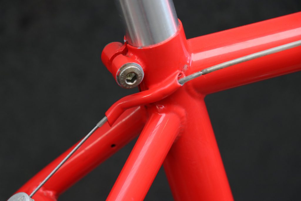 26インチのカンチブレーキ、今ではクロスバイク帯でも見る事が無くなった欲しい人にはたまらない仕様。トップチューブのワイヤーガイドも当時ならではの意匠が残されています。