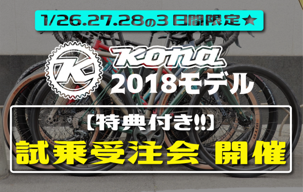 急遽開催!!【特典あり】1/26~1/28まで3日間限定!!~KONA2018年モデル受注会~