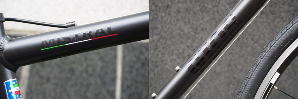 自転車ブランドと言えば、面積の狭いフレーム部にロゴを”バン!”と見せて自社ブランドの宣伝をする事がセオリーである中、クールで飽きの来ない印象を持つマットブラックカラーをベースにあえてブラックロゴ!と、発想としては逆に大胆!