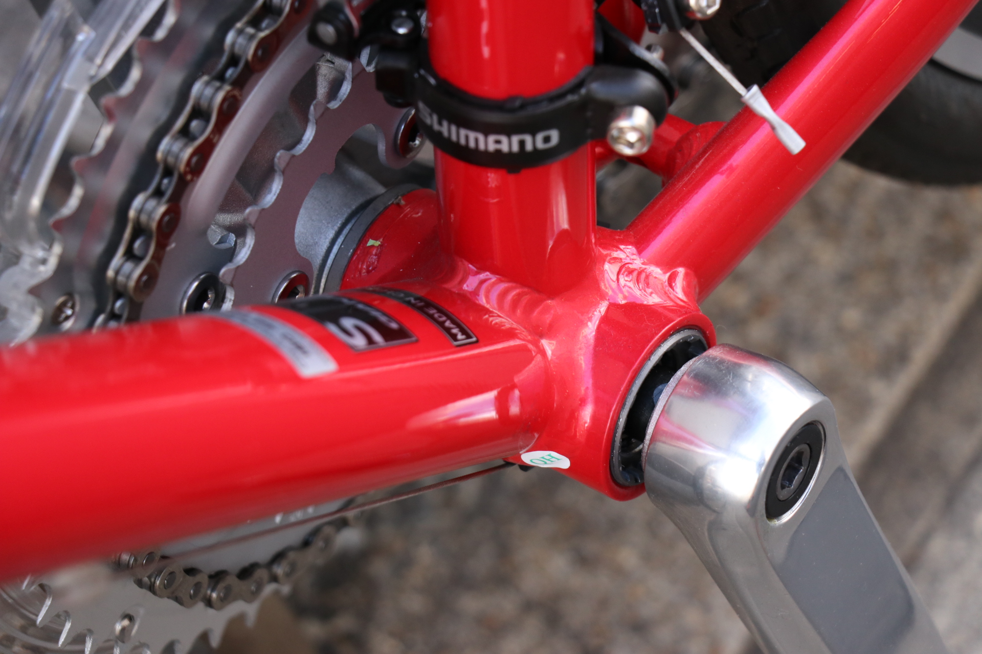 上の写真はBBというペダルの根本にあたる回転軸部分、いわゆる自転車の心臓部になります。