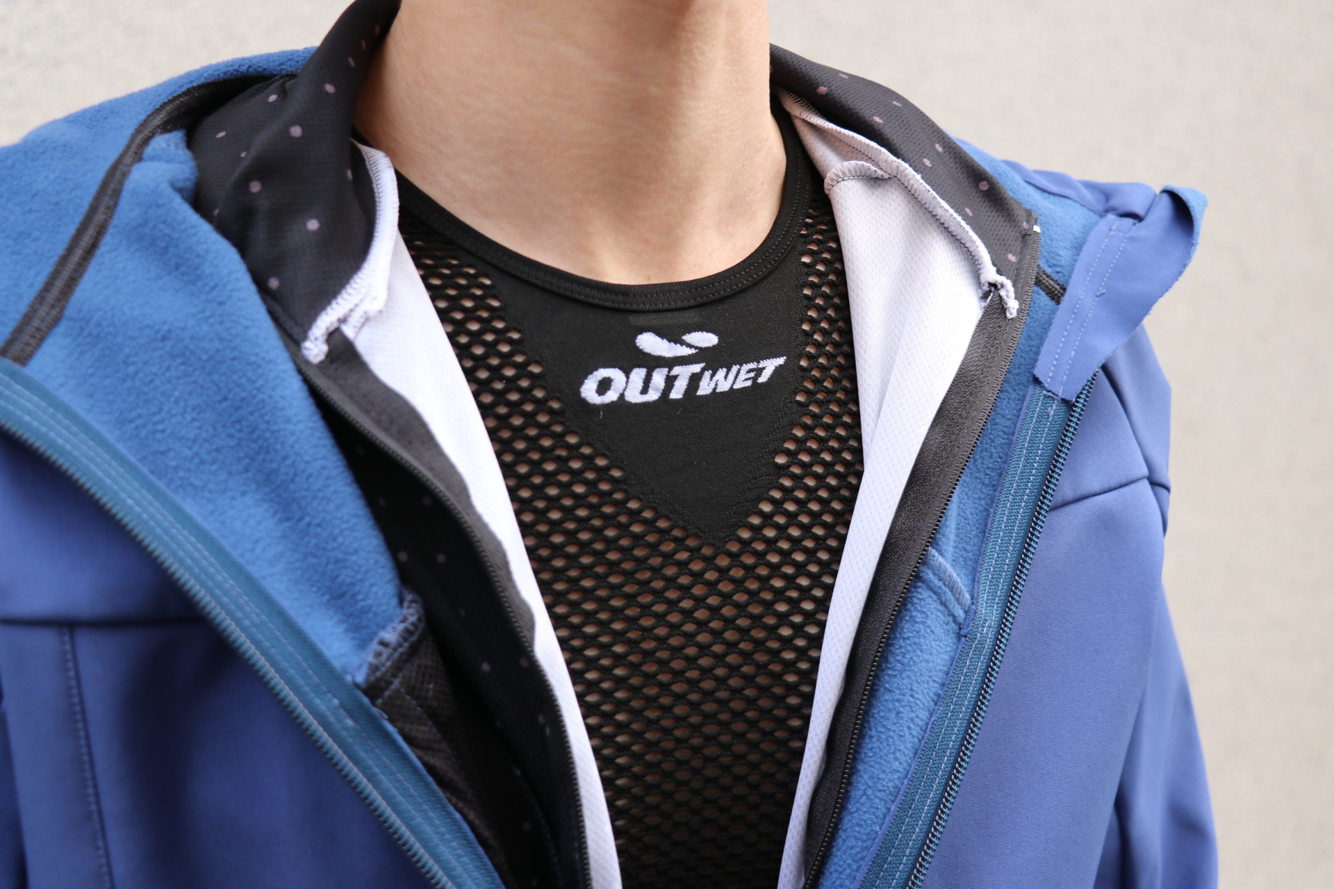 そこでOUTWETでは特殊な編み方を用いたメッシュ状にすることで肌についた汗を吸い上げて、そのまま外に逃がすという仕組みを作っています。