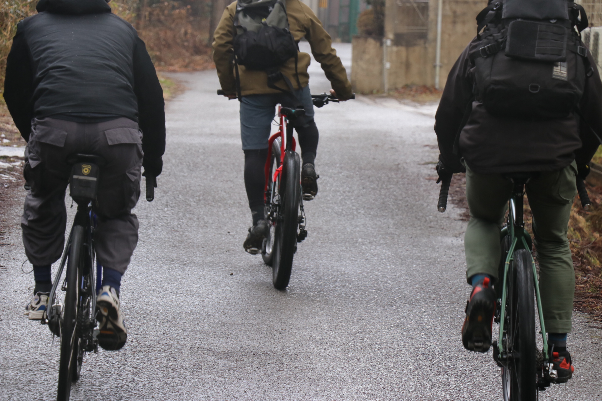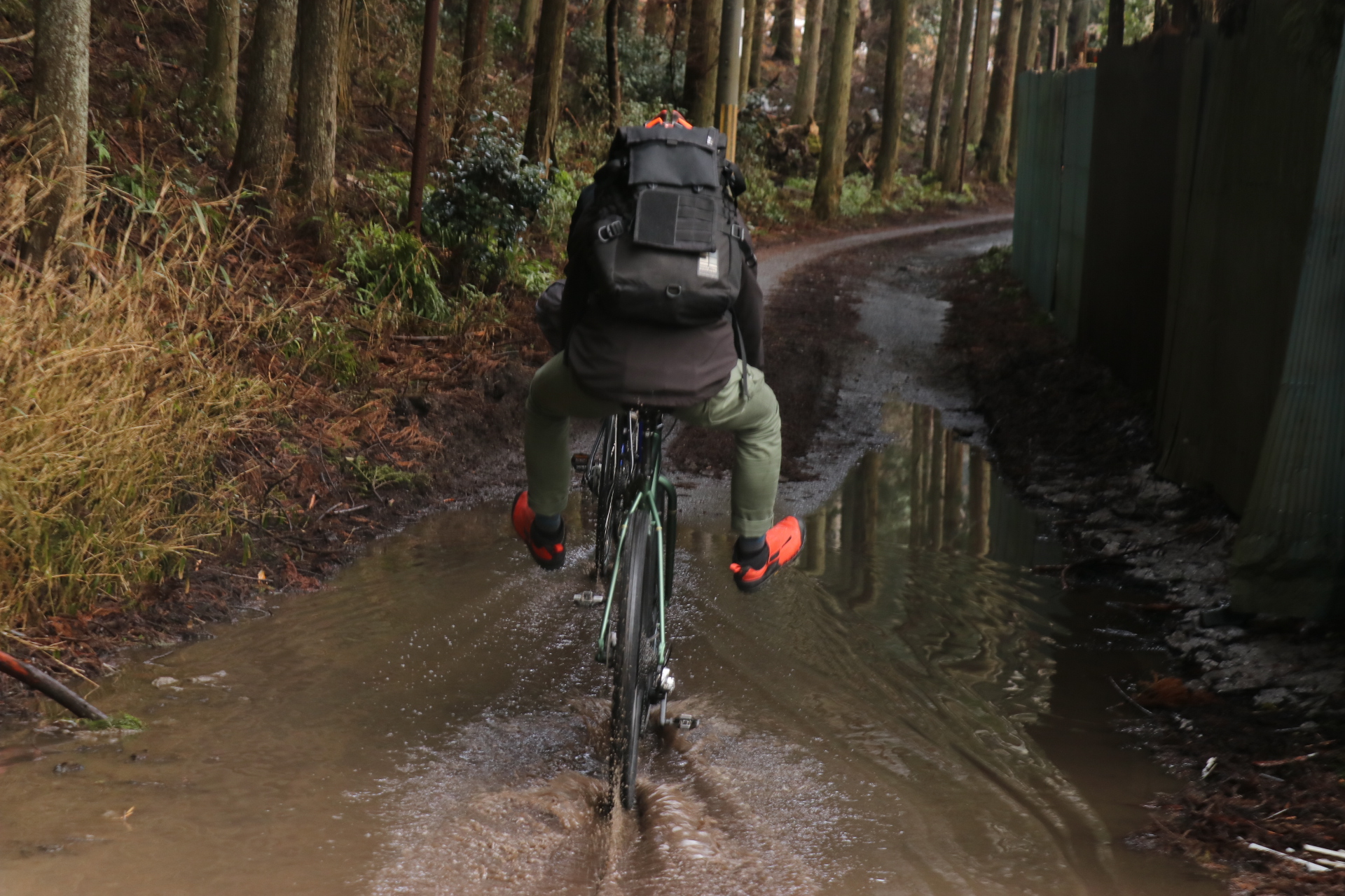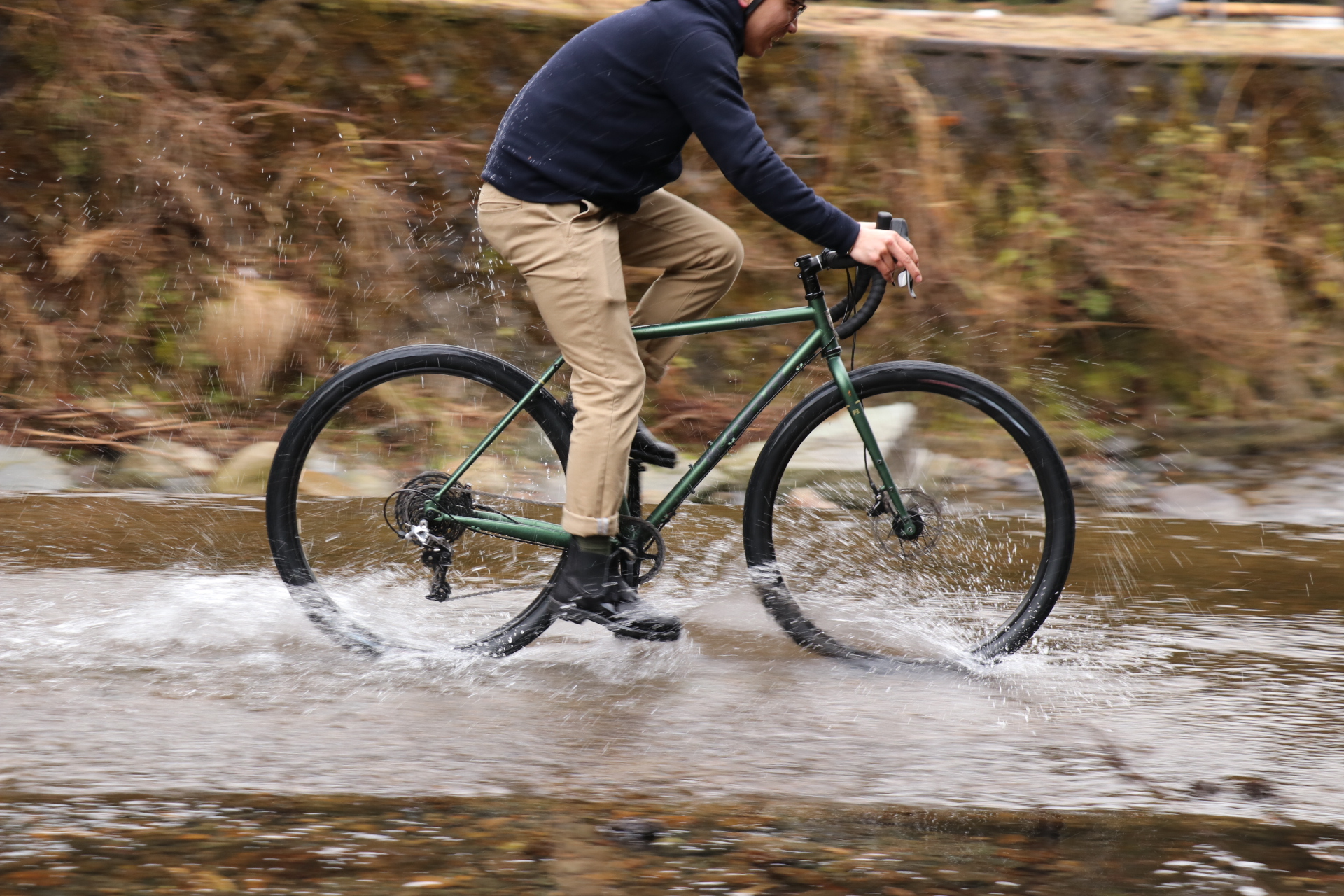 アプローチのオンロードもドロップハンドルで軽快に進め、薄氷の上やトレイル程険しくないダートは700×50cで充分にグリップしてくれていました。