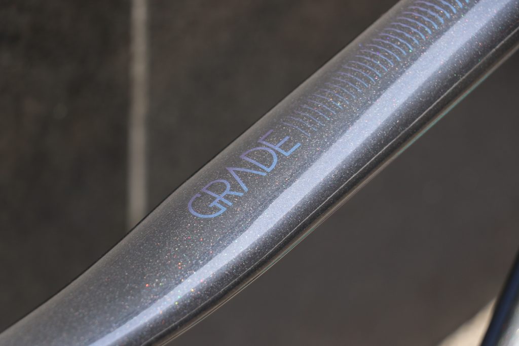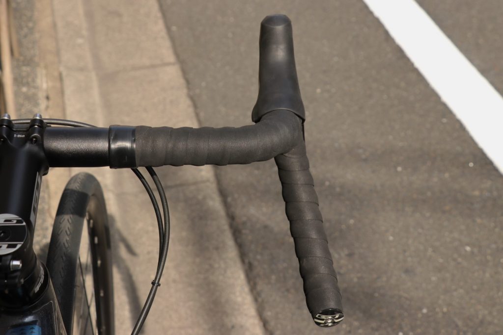 やや開いた下ハンドルは握った時に無理がない角度で馴染みが良く、荒れた道でもしっかりと抑え込むことが出来て安心です。