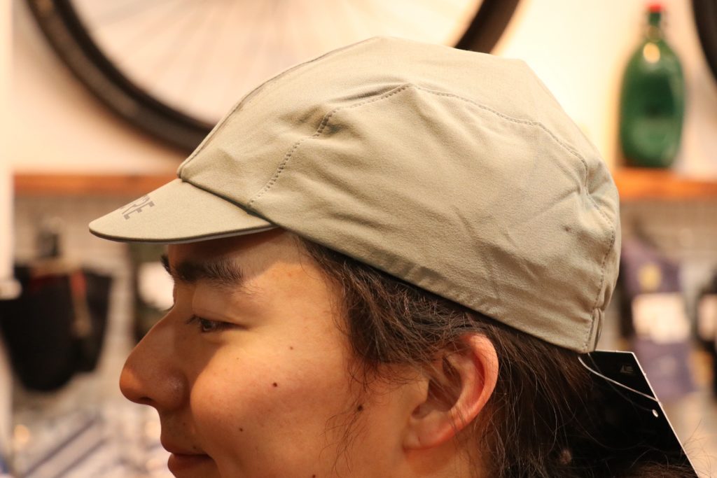 中央部に配されたテープ、またつばのブランドロゴはリフレクター素材。夜間走行における安全視認性にも優れたデザイン。