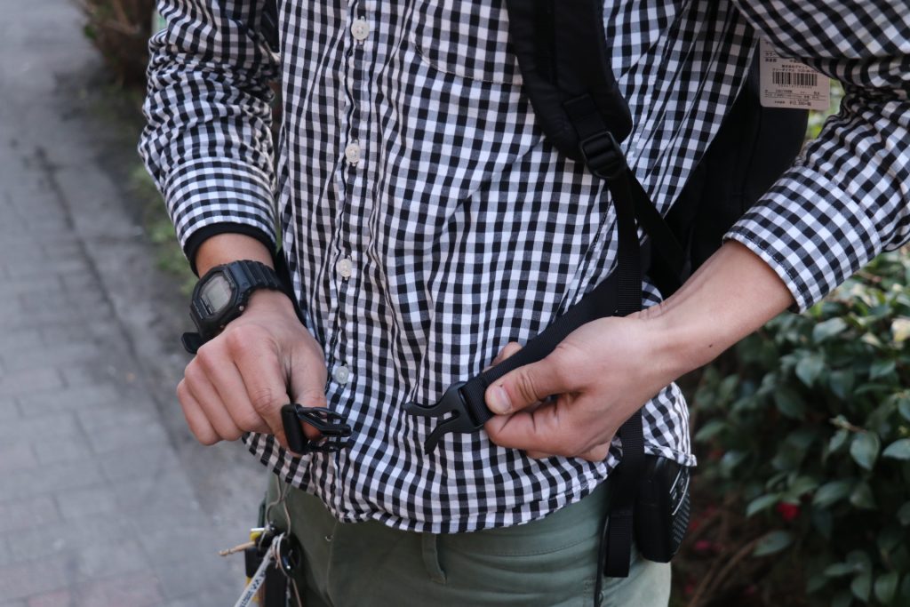 またバッグの揺れを防止するチェストベルトも完備。不要な際はバッグに収納できる配慮もなされております。