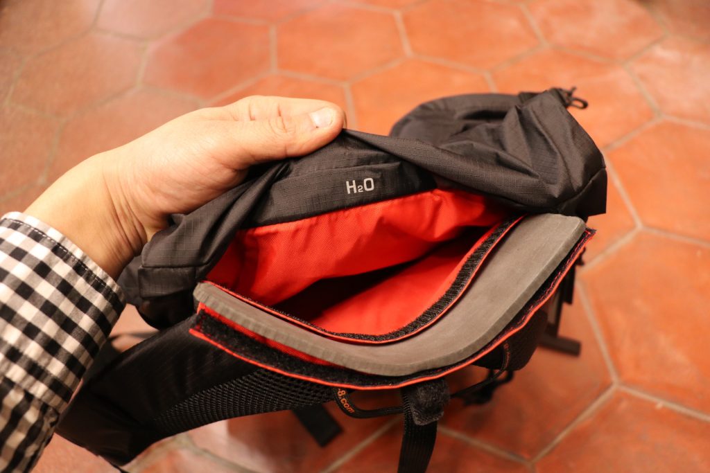 背面には2つのポケットが用意。一つは背面パッド用、もう一つはハイドレーションポケットとなります。
