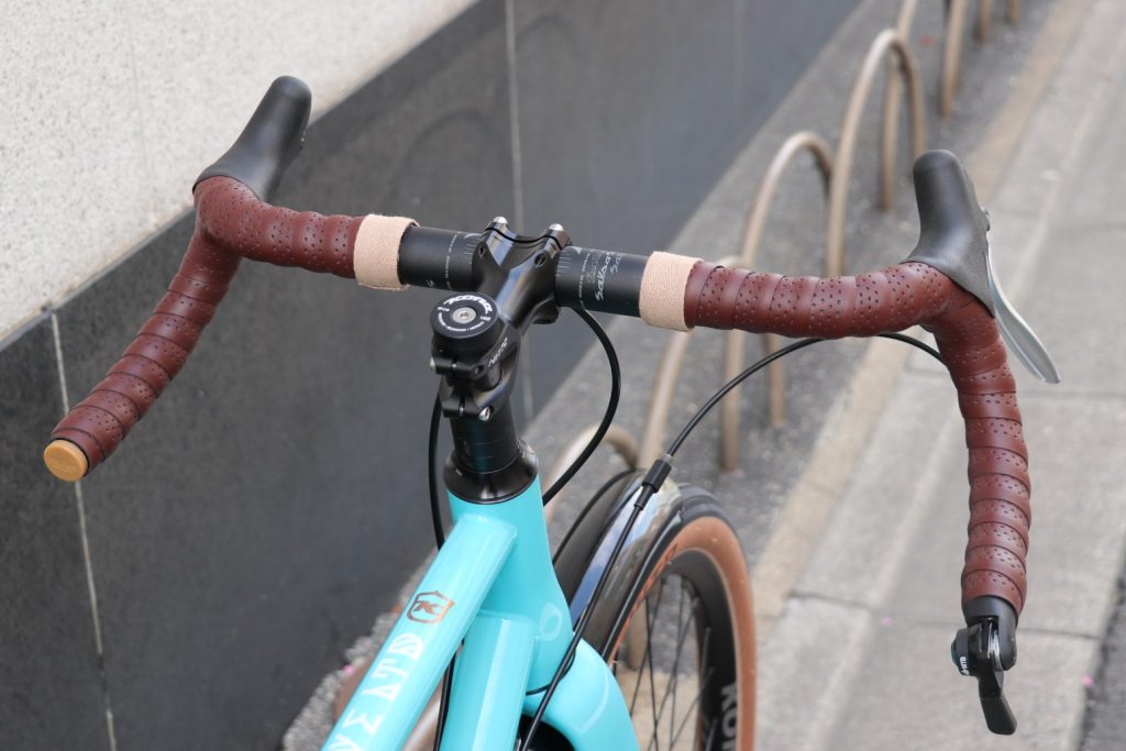 ハンドルバーにはモダンなグラベルバイク~ツーリングバイクに非常に収まりの良く、ハンドルバー各部へのアクセスしやすいフォルムに定評あり、軽量かつ剛性高い7005番アルミ採用の◎SALSA COWCHIPPER BAR¥8900税別をチョイス。