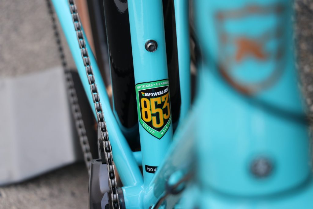 最高級スチールパイプ「REYNOLDS853 」をベースに、テーパーヘッドフルカーボンフォーク、前後スルーアクスル、ディスクブレーキの仕様、そして完成車モデルでは650x47cロードプラスタイヤ(700x30Cとほぼ同じ外径となります)を採用といった、あたかも北米ハンドメイドバイクショー”NAHBS”に出品されてもおかしくない佇まい。