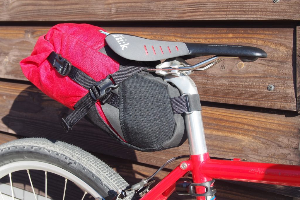 バイクパッキングにおけるサドルバッグとしてはやや小ぶりな3~5リットルの容量ですが、女性の方など小さめなフレームへのセッティングはしやすく(後輪と擦れにくい)、