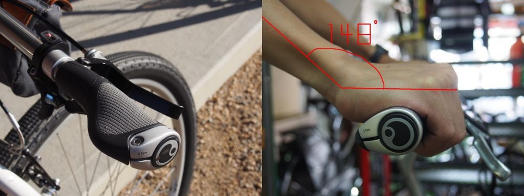 しゃもじのような形となるエルゴノミック型グリップは、衝撃吸収性高く、ダートコースや激しい段差からの衝撃でも手首がグリン!っとなり難い、当店では定番中の定番カスタムパーツとなります。