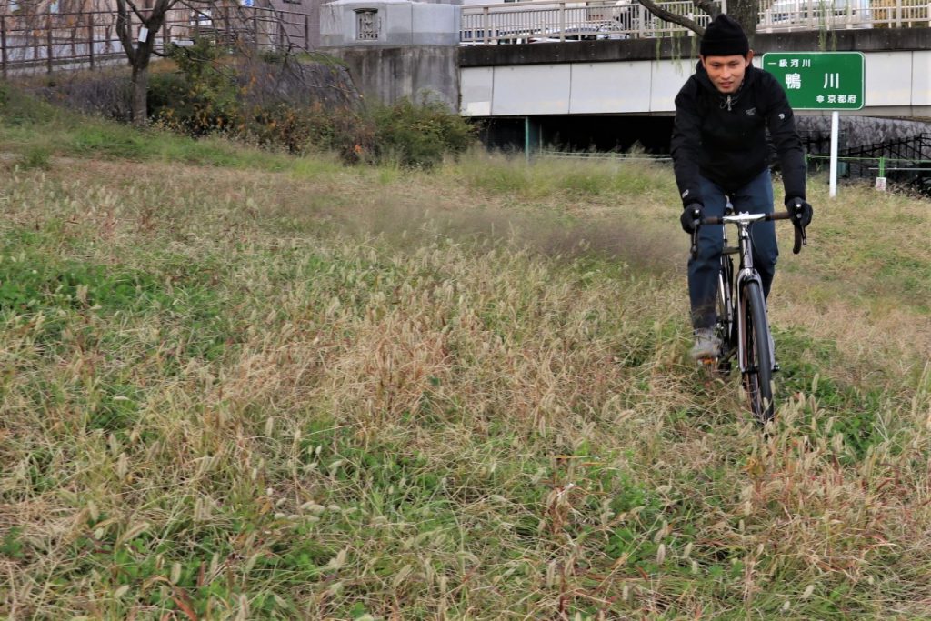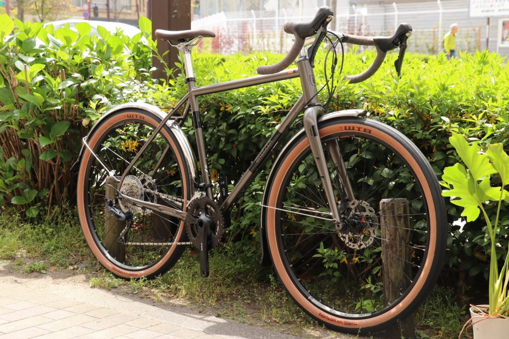前後のフェンダーは取り外し、フロントシングルギアシステム、グラベルタイヤ、ドロッパーシートポスト、ワイドドロップハンドルに変更され、とかなり”遊べる仕様”にしておりますね!