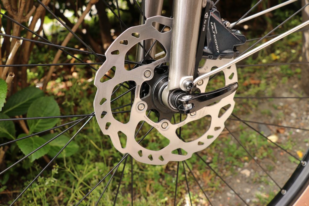 他社完成車ではコストダウンされがちなディスクブレーキのローターには、高い冷却効果により強いストッピングパワーを提供するアイステックテクノロジー採用のシマノ「SM-RT70」が標準採用されておりますネ。