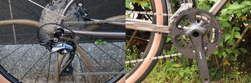そしてクランクにはシマノロードコンポにはない更に軽い32Tギアが用意されるPRAXIS WORKS Alba 48/32Tが用意。