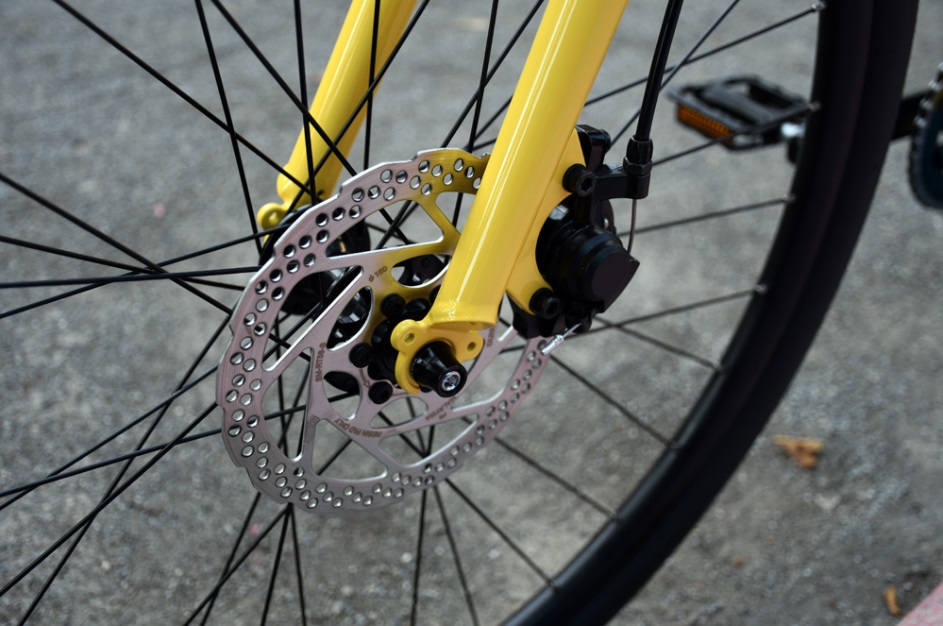 そして通常のロードバイクのようなリムブレーキと違い、ディスクブレーキ採用につき、標準採用の安定性高い650B(27.5インチ)ホイール⇒高速順行性高い700Cホイールへ等といった用途に応じたホイールの変更カスタムがOK。