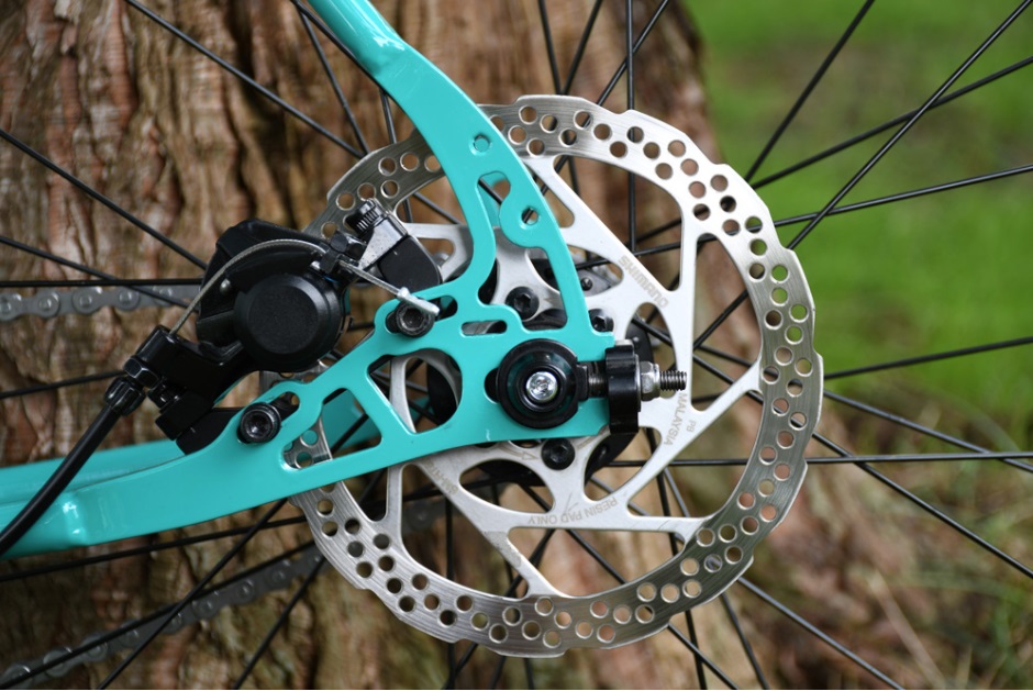 またディスクブレーキの高いストッピングパワーによりハブがエンドからずれる事を回避するべく、クイックレリースではなく固定力の高いヘックスでのシャフトを用意(やはりこれも分かってらっしゃる!)