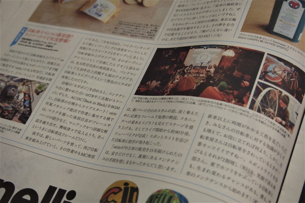 「サイクルハテナ(eirin丸太町店別館)」オープニングイベントの一貫、「自転車組み上げライブパフォーマンス on ステージ」の模様がフリーペーパー【 CYCLE / サイクル 4月号】に掲載されております!