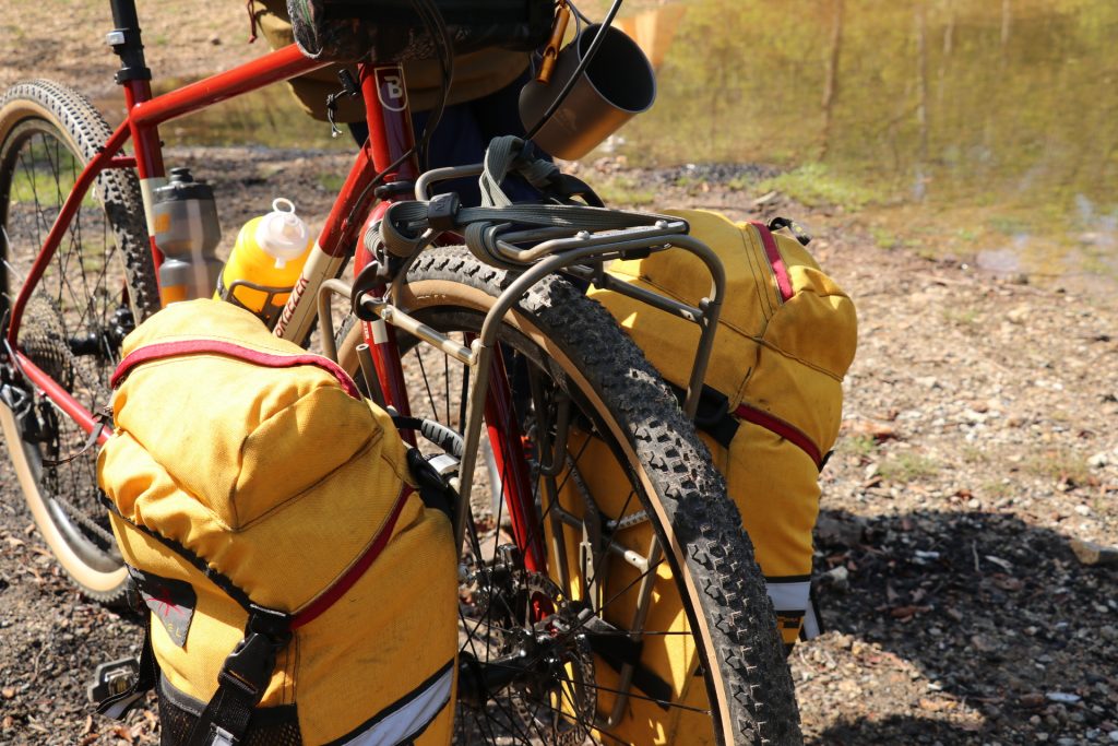 にもありますように、そのしなやかなさと軽さを併せ持つチタン独特の乗り味とシクロクロス太目のタイヤ装着可能な設計は今回のような荷物積載が必要なツーリングにも問題なくアプローチできますね!