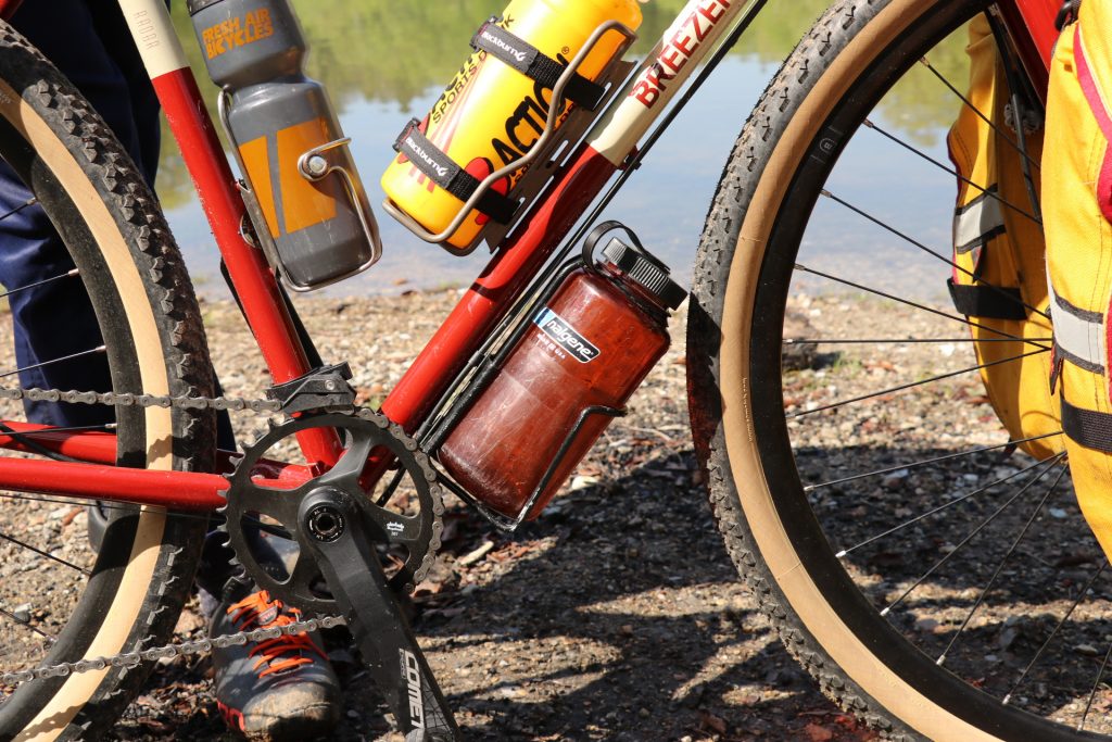 またダウンチューブ下には、こういう時に非常に役立つ専用設計の【 GRUNGE / グランジ 】ナルゲン1.0L用ゲージに1リットル容量の【 nalgene / ナルゲン 】カラーボトル 広口1.0Lを用意。