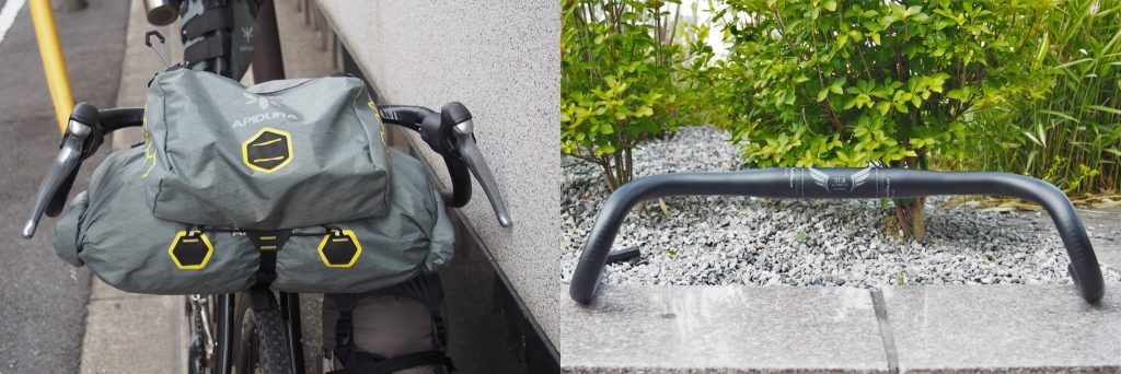 絶妙にハの字に開いた形状は、後述にあります【APIDURA/アピデュラ】 Handle Bar Bagの大容量でもスマートにハンドル内に収まってくれます。(画像のサイズで440mm幅)