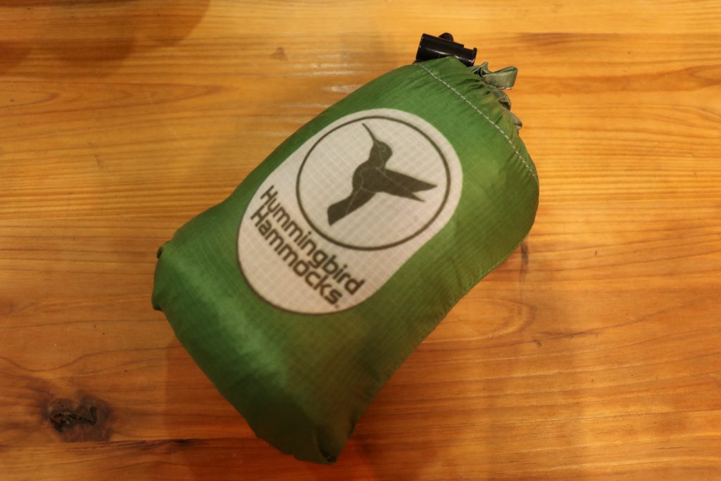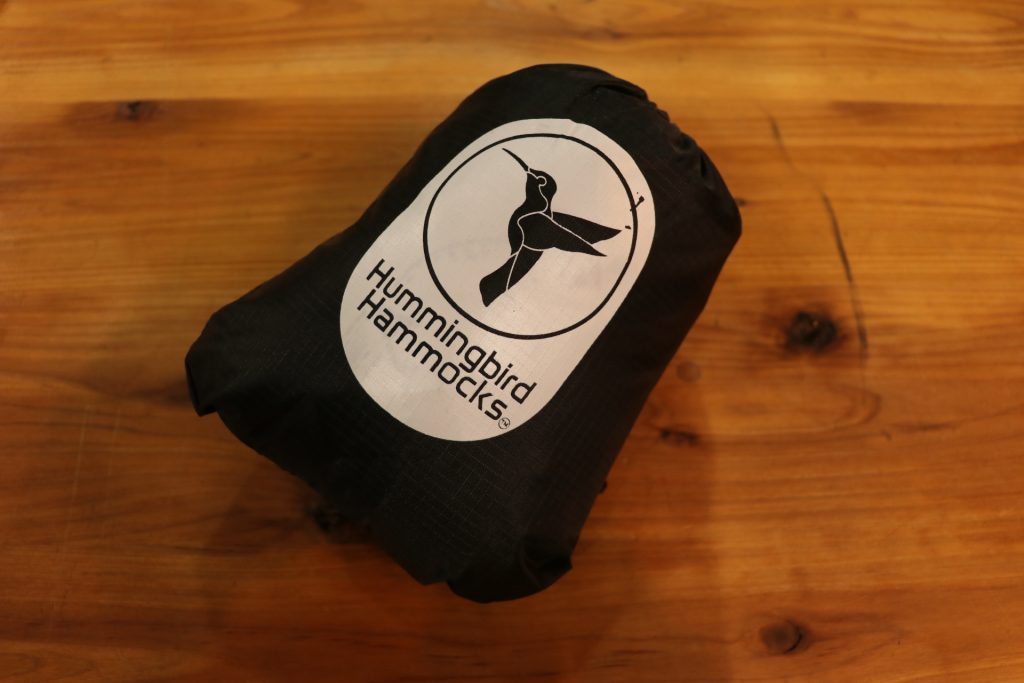 ※Hummingbirdのハンモックの収納袋にはロゴと説明書きがプリントされていますがただのシルクスクリーンではなく、タトゥーのような特殊プリントで軽量化済。本当に極限まで軽さにこだわってあります。