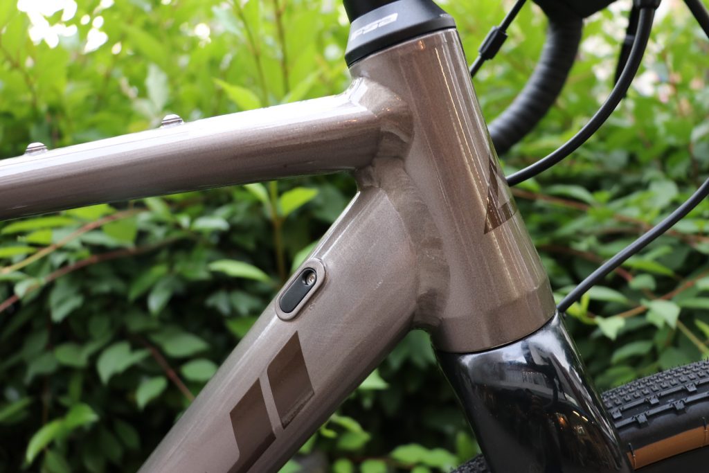 ハイドロフォーミング成型されたチタン配合の軽量アルミに、テーパーヘッド、コラムまでカーボンを使用した軽量フォーク、フォークサイド・ダウンチューブ裏含め数多くのボトル・キャリア台座、そして前後スルーアクスルと、現在進行形の技術・テクノロジーがふんだんに落とし込まれたJARI。