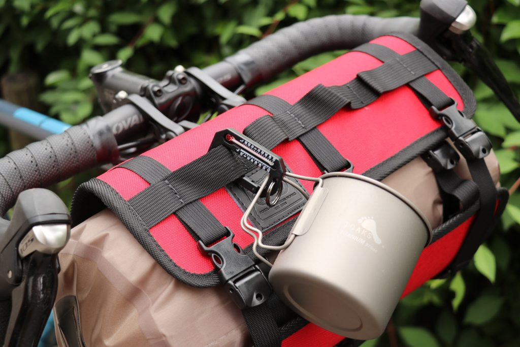 そして何より。バイクパッキング群における”ハンドルバーバッグ”の軽量性能を重視するが故発生する欠点”固定力の甘さ”を解決してくれるのが、このBUNDLE ROLL(バンドルロール)*通称バンドルラックでありましょう。