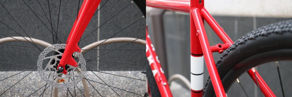 28c前後スリックタイヤで普段のサイクリング仕様に、33cブロックパターンでシクロクロスコンペに、また40c前後のスリックで長距離向けに、そして42Cブロックで林道に、と あらゆる環境化に合わせたタイヤ選択で、様々な遊び方を許容してくれるバイクに仕上がっております。