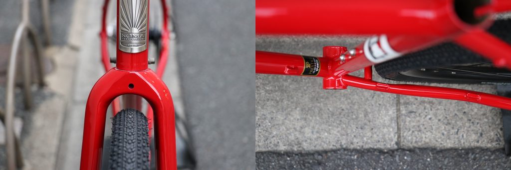リアブレーキアウターはパナソニックオーダーにも採用されるダウンチューブ外側外装式。