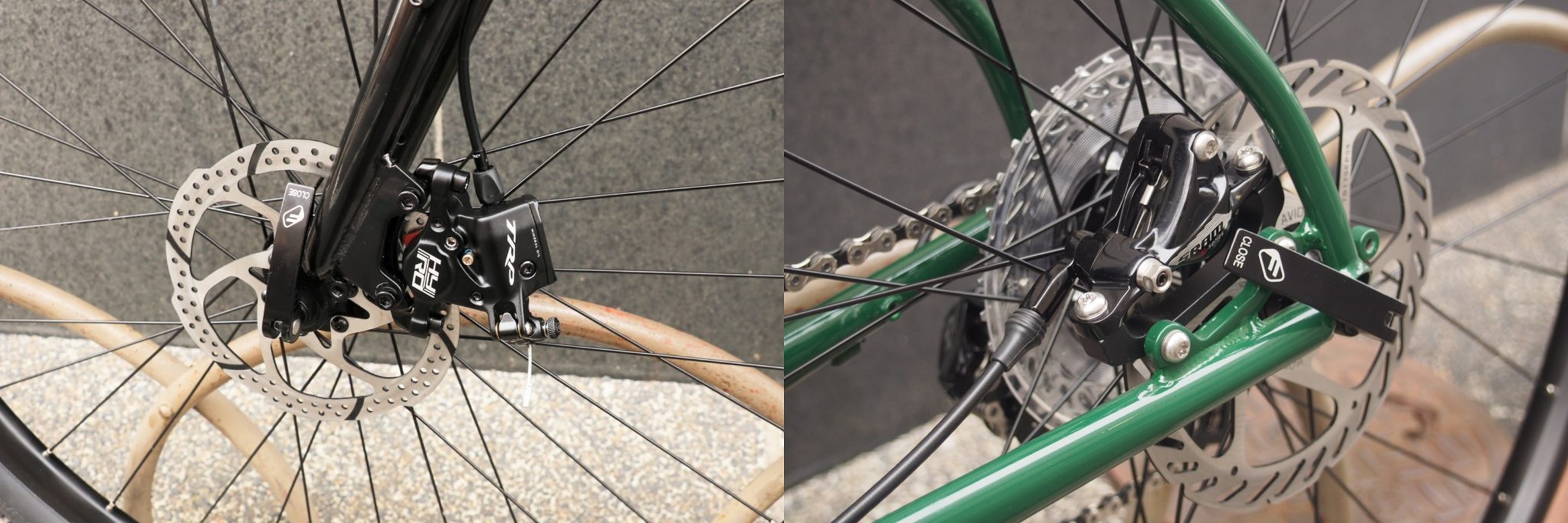 全モデル共通として「オフロードまでも可能とする最大タイヤ幅29×2.1インチのクリアランスを持つダブルバテッドクロモリフレーム&フォーク」ベースに、「油圧ディスクブレーキ」を採用。