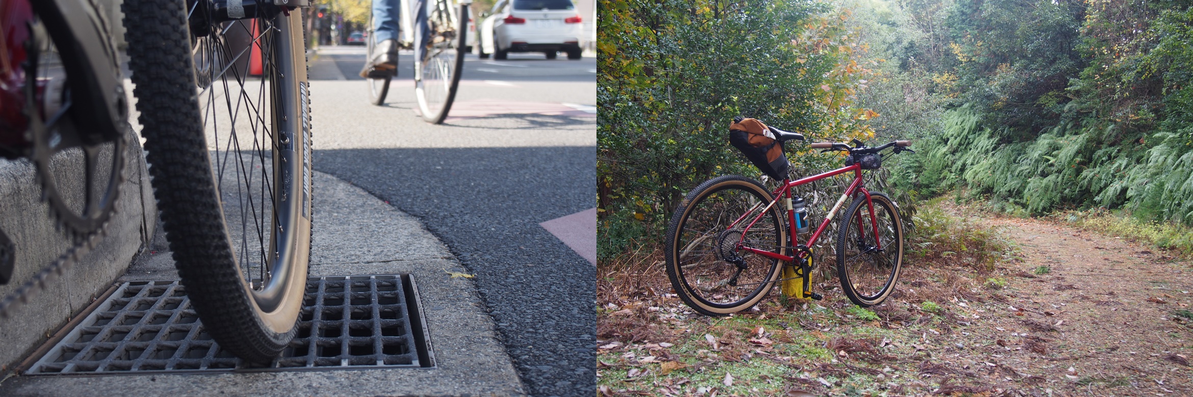 ロード、クロスバイクよりは太く、ゴリゴリのMTBよりは少し細目。