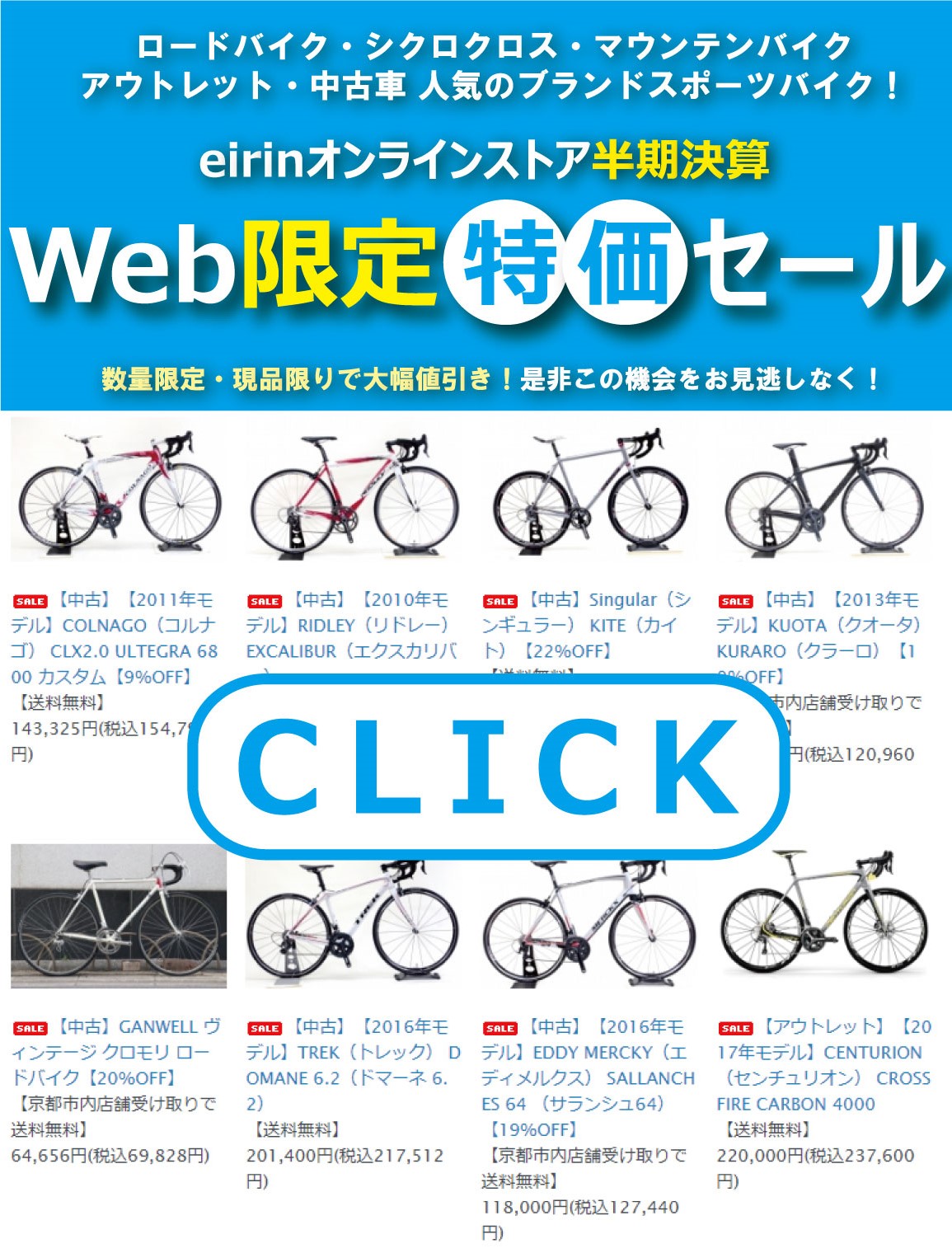 eirinオフィシャルオンラインストア限定!【 ブランド 中古/アウトレット ロードバイク・シクロクロス・MTB 】半期決済 特価セールを開催します!
