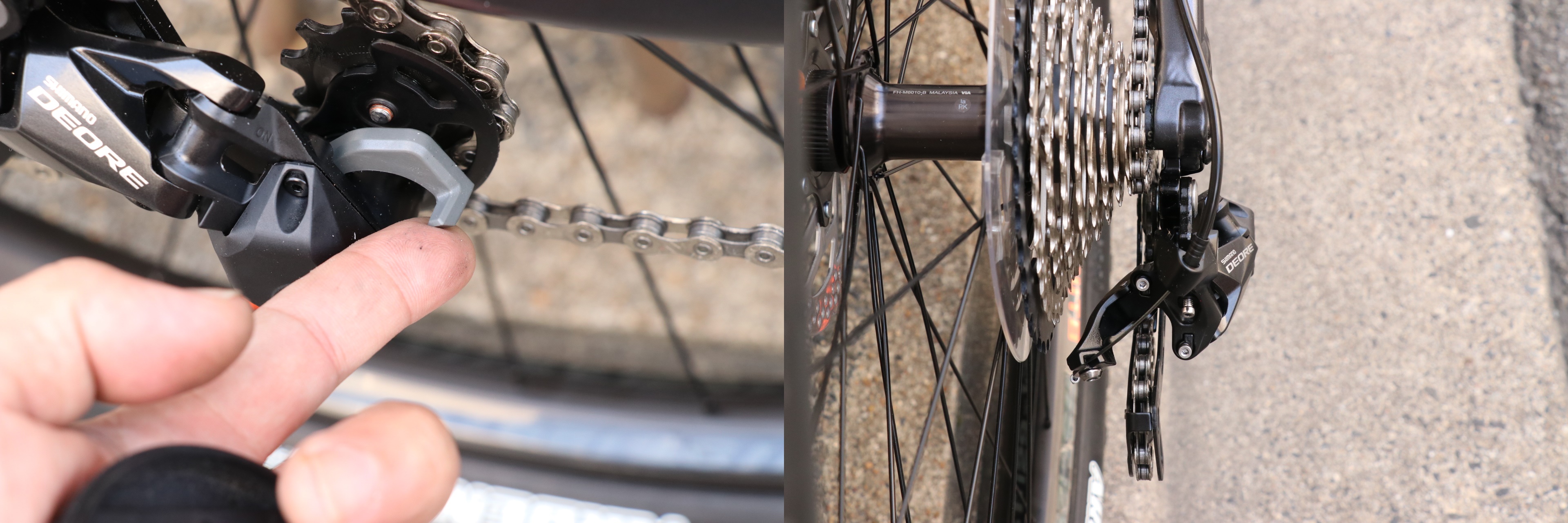 SHIMANODEOREの1x10SPEEDコンポは価格と機能のバランスが良ーく取れています。M6000のリアディレイラーはシャドー+を採用しており、ディレイラーの出代を抑え転倒などでのメカトラブルのリスク減、スイッチで切り替えできるスタビライザーも付いているので下り等の場面でチェーンテンションを上げる事も出来るトレイルライドには持ってこいな構成です。