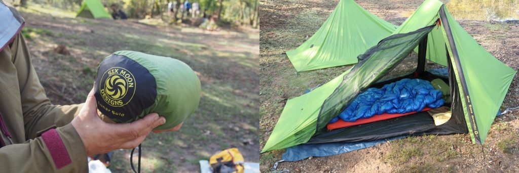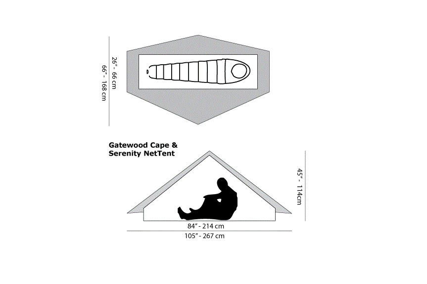 構造としては底面の無いフロアレスタイプという事で慣れていない方はグランドシートを用意するか、もしくは同社のセレニティーネットテントと接続すれば、ちゃんとした1人用のテントになって安心。(もちろん、重量増えますが、それでも合わせて700g以下と充分に軽量です。)
