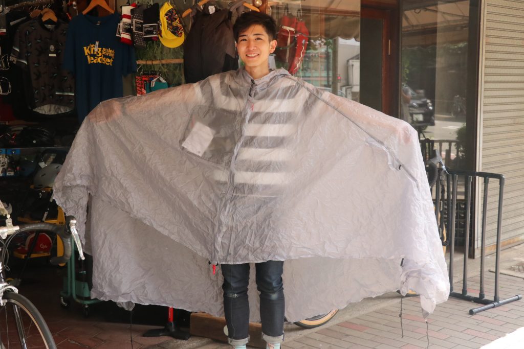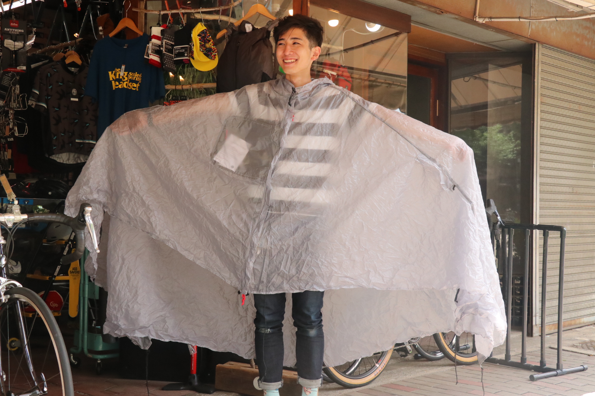まずはポンチョとして。山用・自転車用どちらでも大事な背面長めのデザインはもちろんOK。