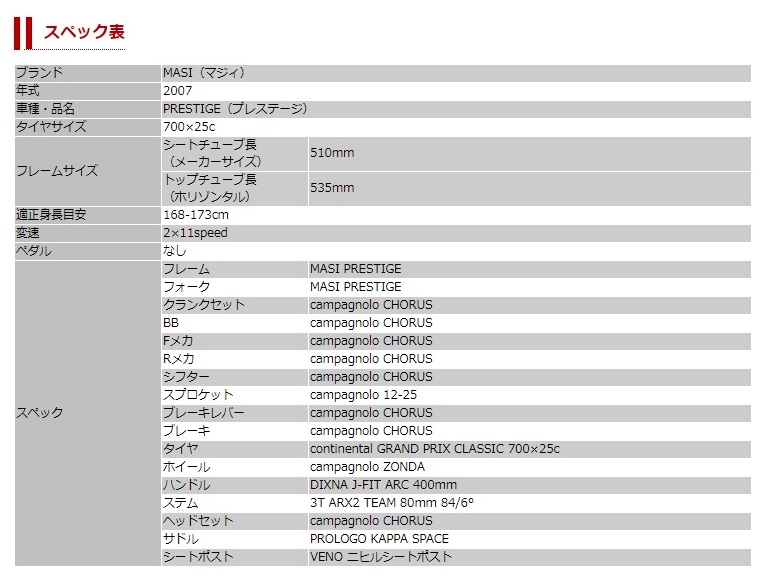 中古車【MASI / マージ 】”PRESTIGE / プレステージ” カンパコーラス2x11speed+ZONDAホイール完成車