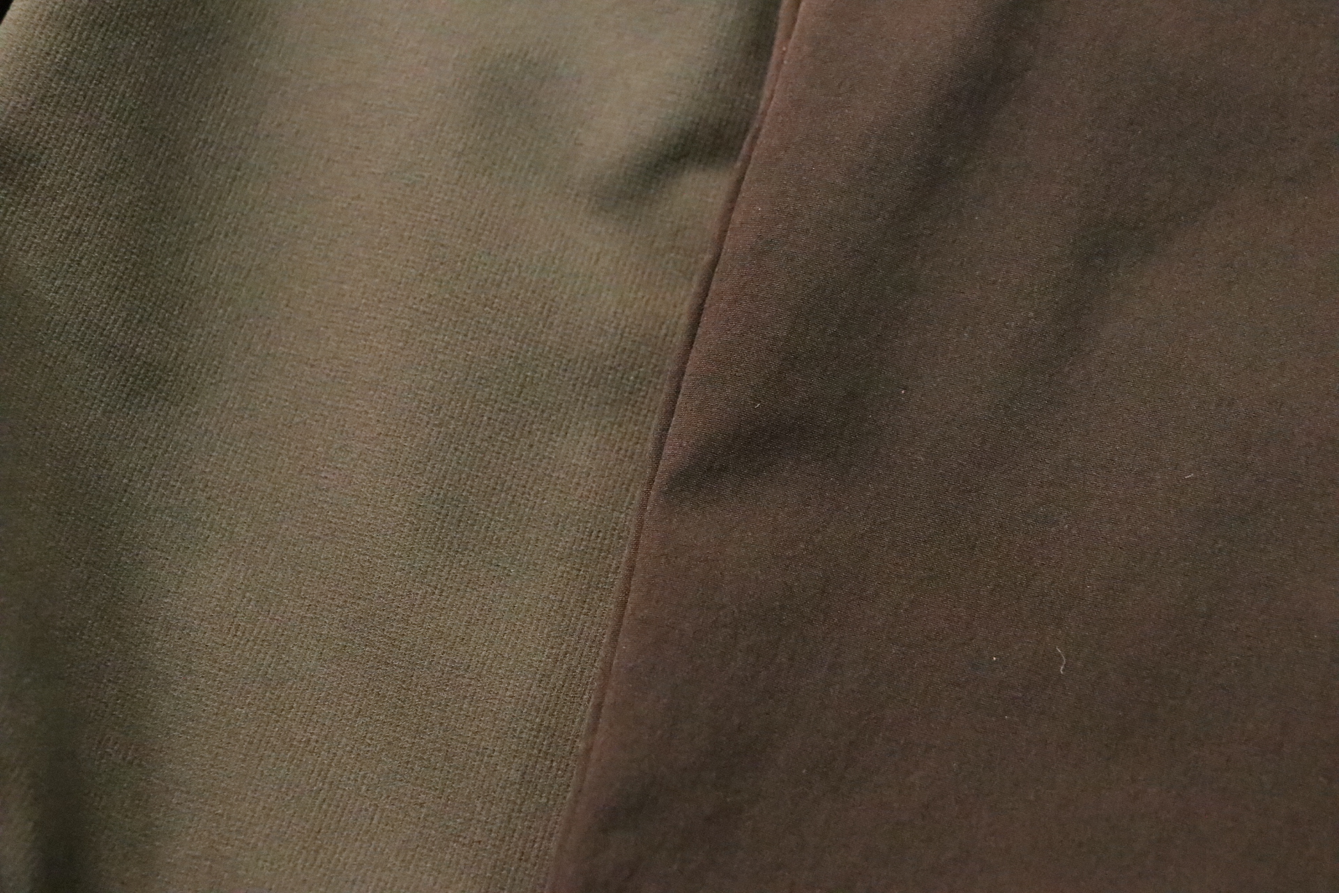 僕らのオリジナルアイテムの時に使ってもらった生地は『東レPrimeFlex』、伸縮性に優れるのはもちろん、ストレッチバック=伸びた状態から元に戻る力が素晴らしく、履きまわしても型崩れしにくい良い生地でしたが今回はよりタフな『4WAYクロス』に変更。
