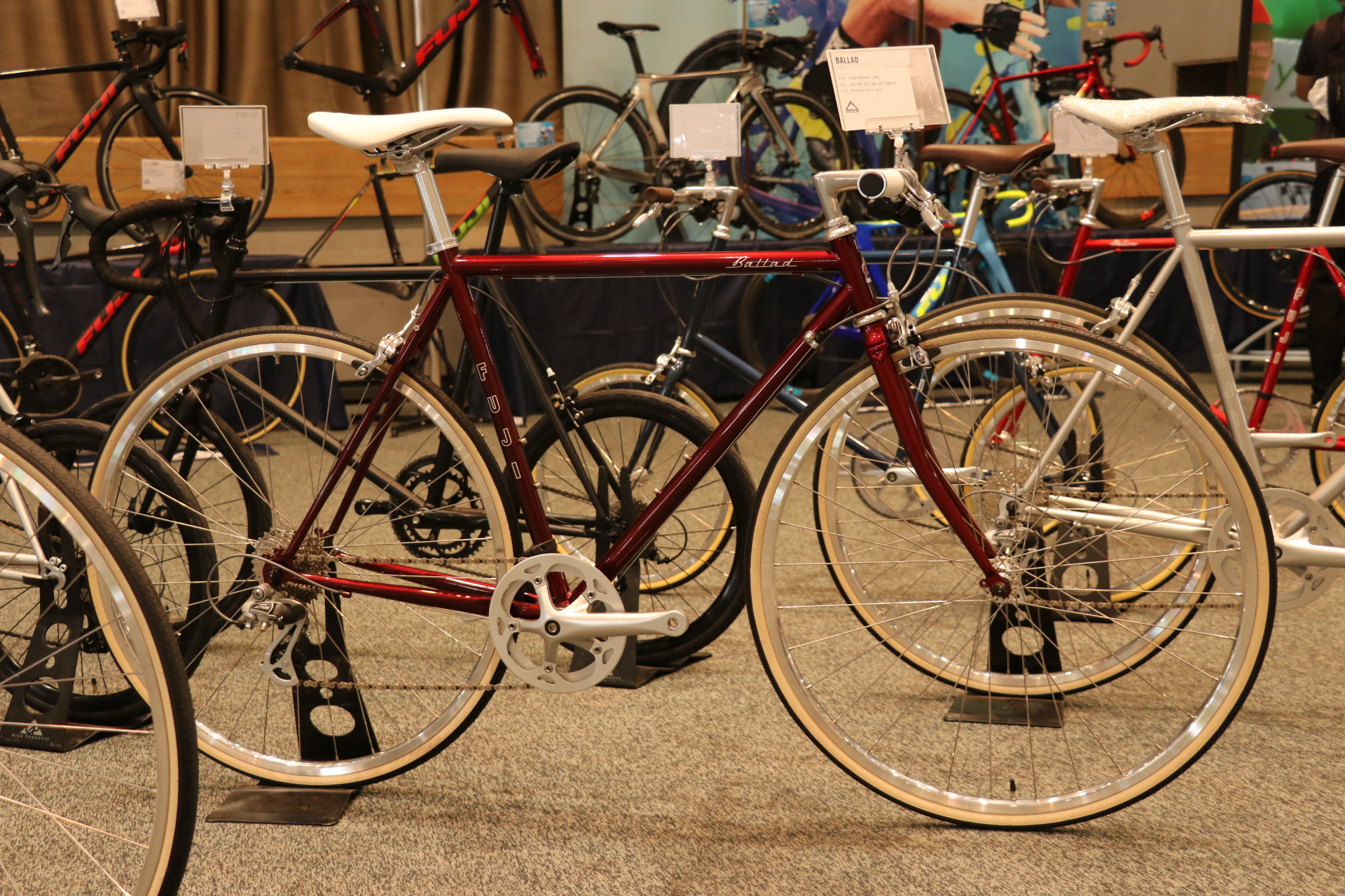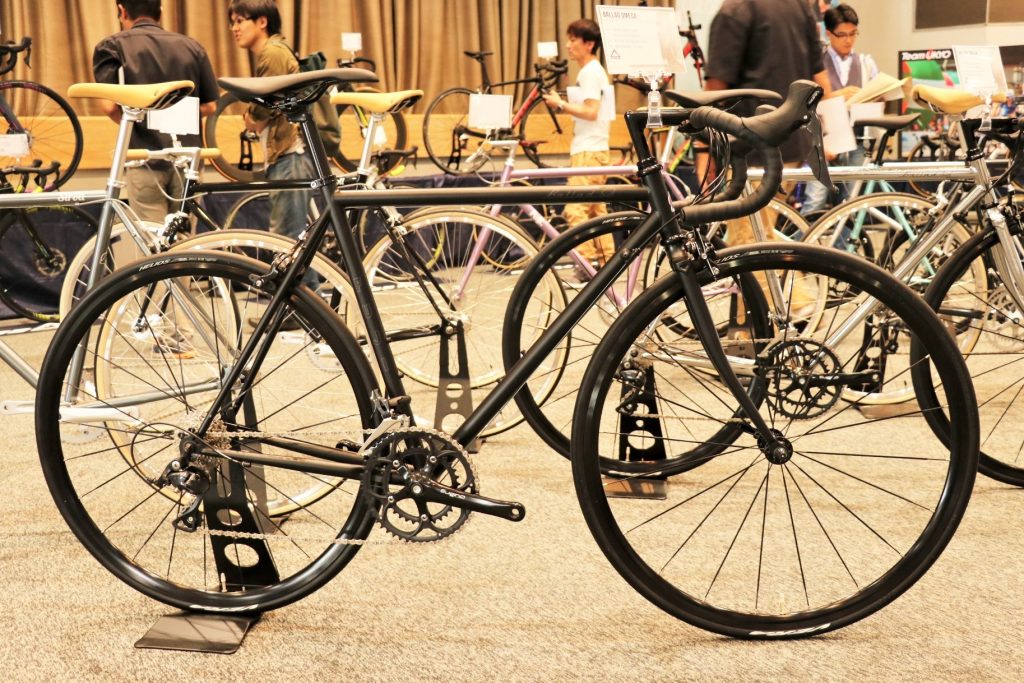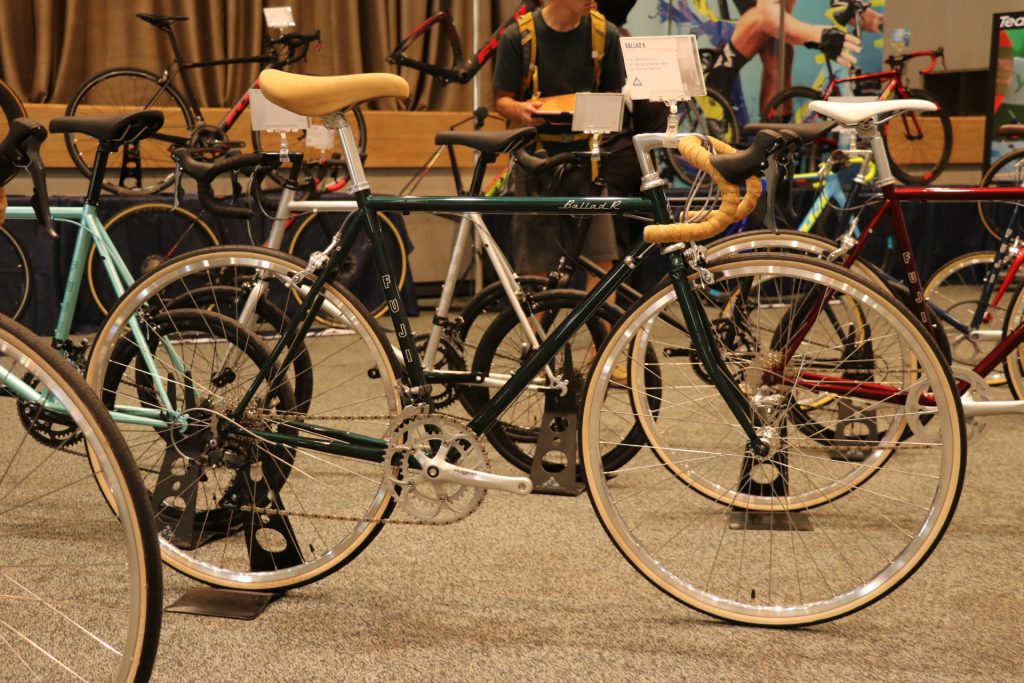 シンプルでスタイリッシュなクロモリフレーム採用のロングセラーロードモデル「フジ バラッド」をブラックパーツで構成。されクール&スタイリッシュな雰囲気を持つ一台。