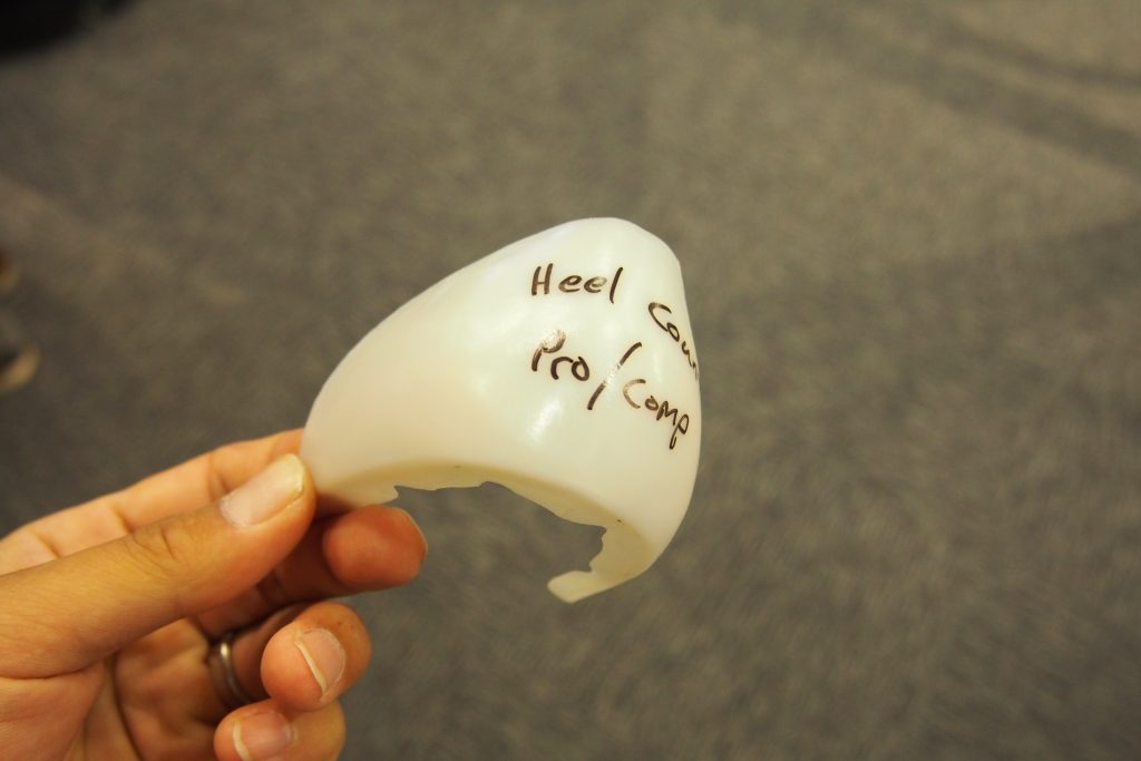かかとにはヒートモールダブルヒールカップと呼ばれる白いカップが入っており、熱成型が可能です。