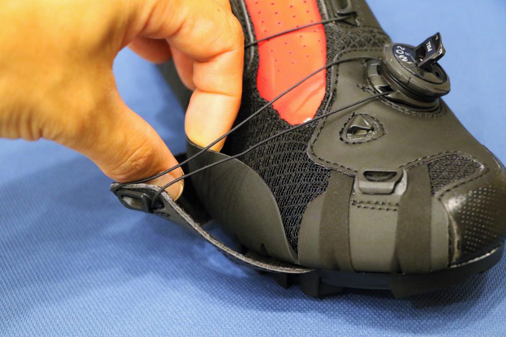 ビンディングシューズは引き足(ペダルを引き上げる動き)を使う為、かかとのフィット感がとても重要なのでかかとがしっかりとヒールカップにフックする事が重要です。