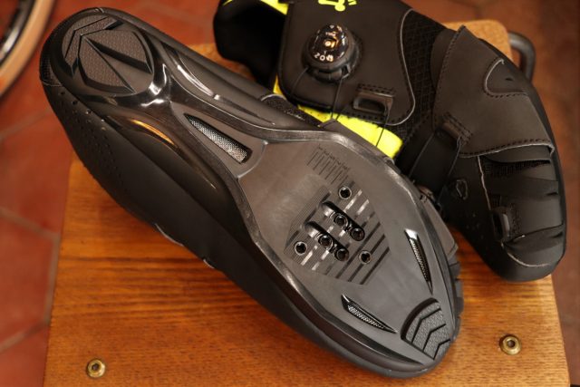道の駅に寄ったり、ライド中のランチなど、”ちょっと歩きたいな”という時にも滑りにくい様、つま先とかかとには歩行時の滑り止めにソールが配されているのも嬉しいポイント。