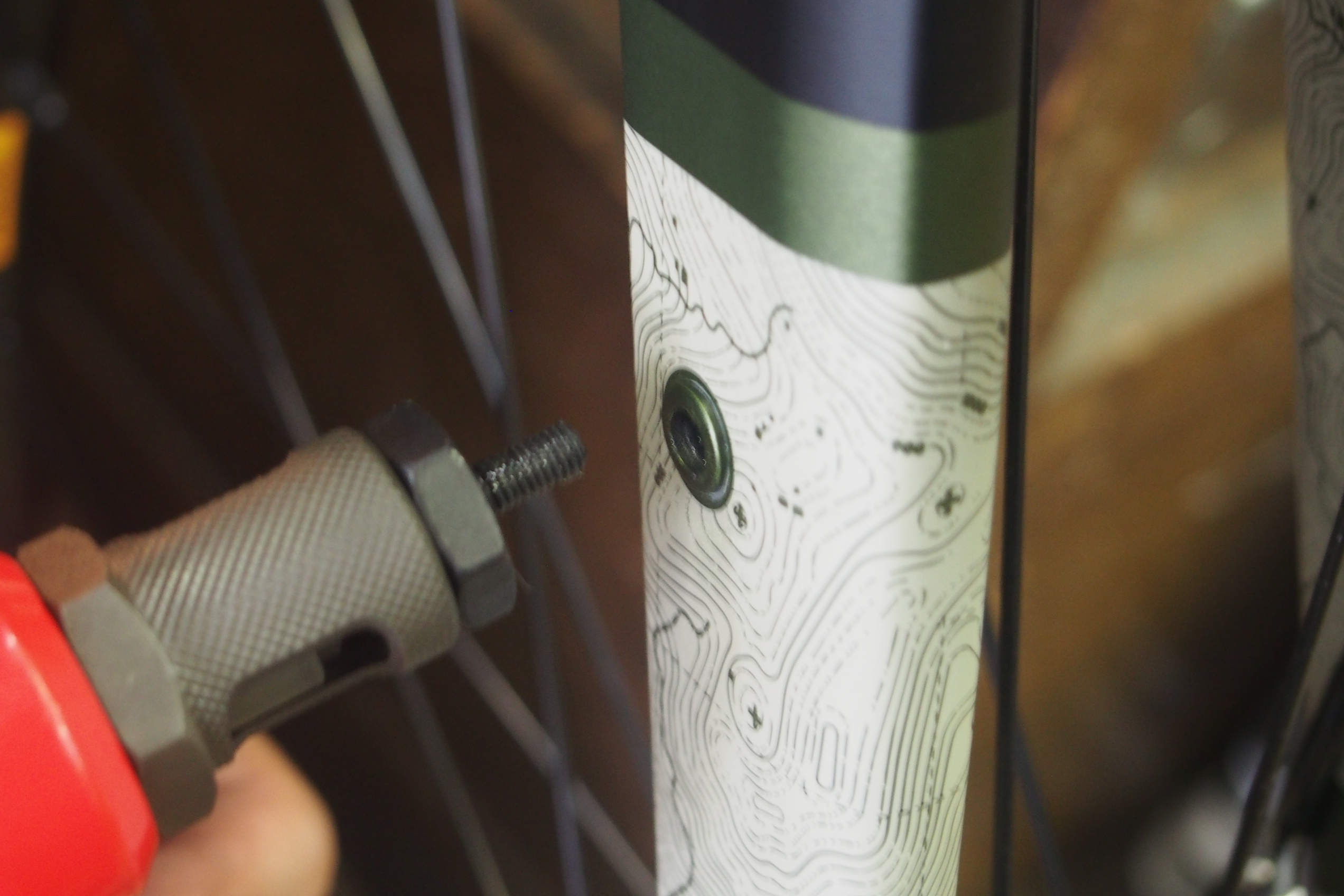 カーボンフォークの部分なので力いっぱい作業しないほうが良いと思います。