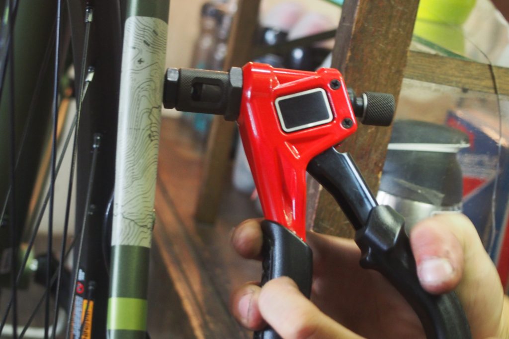 ブラインドナットを取り付ける専用工具「ハンドナッター」のお出ましです。