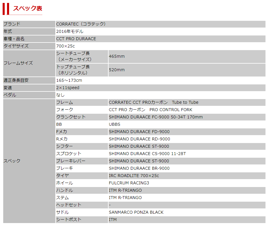 【中古ロードバイク】9000系DURAACEフル搭載!ドイツブランドのピュアレーシングロードバイク【CORRATEC / コラテック 】”CCTPRO ” 2016年モデル