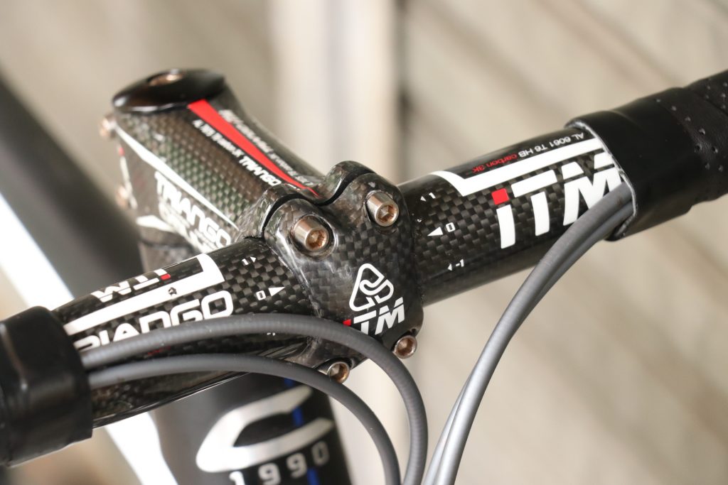 コックピット系はITMで統一。ミドルグレードのTRIANGOのカーボンカラーでまとめられており、性能的にもイイですし・見た目の統一感もありで良いですね。ちなみにサドルはSANMARCOのPONZA、fizikのKIUMレールモデル当たりに変えるだけ軽くできるカスタムしてあげたいポイントです!