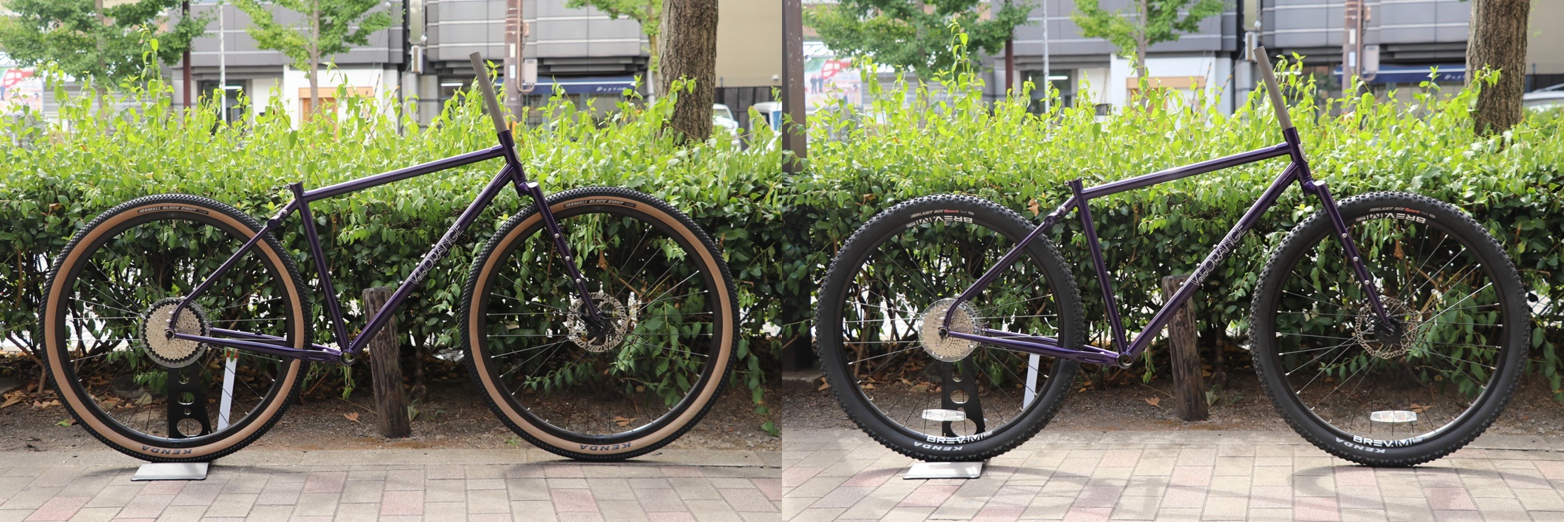 画像左側は700x50C(≒29×1.97インチ)、右側は27.5x2.1インチを装着してみた例。