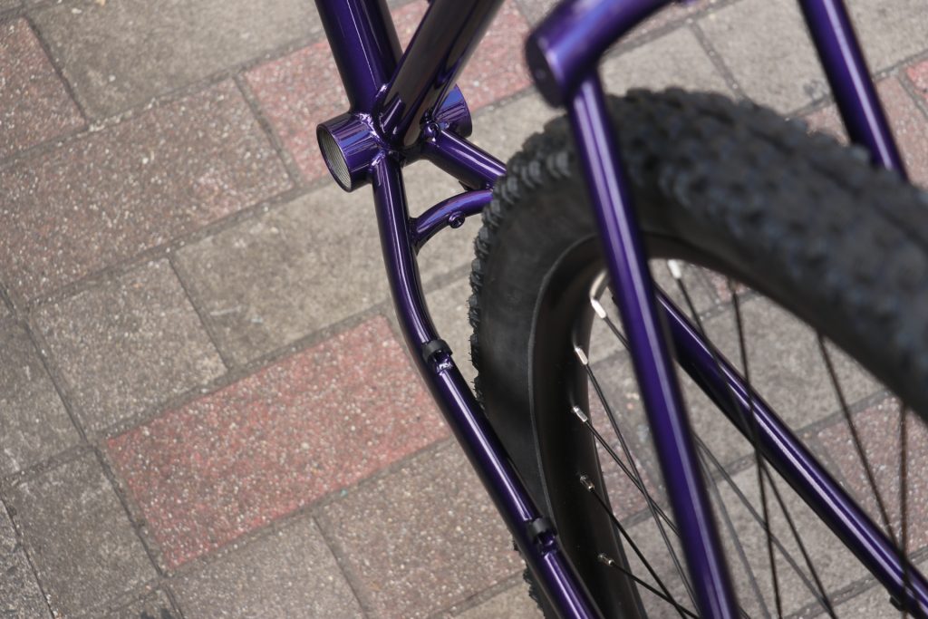 フレームサイズ:M,L,XLは、タイヤサイズ 29″ x 2.4″ or 27.5 x 3.0セミファットタイヤとかなり広いタイヤクリアランスを確保しております。