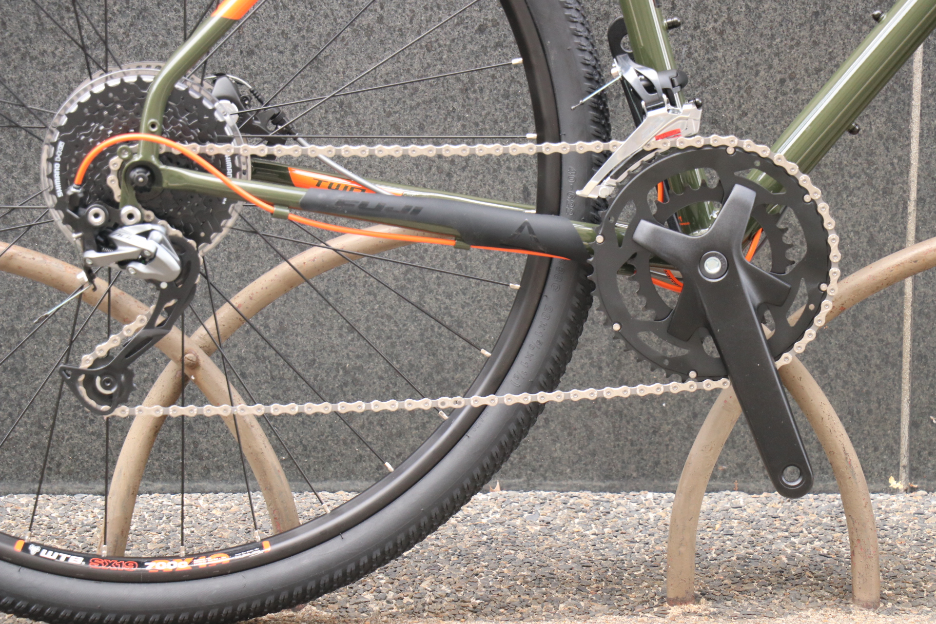 クロモリならではの耐久性、振動吸収性の高さはダート走行のようにラフなシチュエーションでより高い安心感になりますね。フレームパイプにはReynolds520のダブルバテッドチューブを使用しているので軽さとクロモリらしい『しなり』が協調されているのでJARIのコンセプトとも相性良さそうですね。