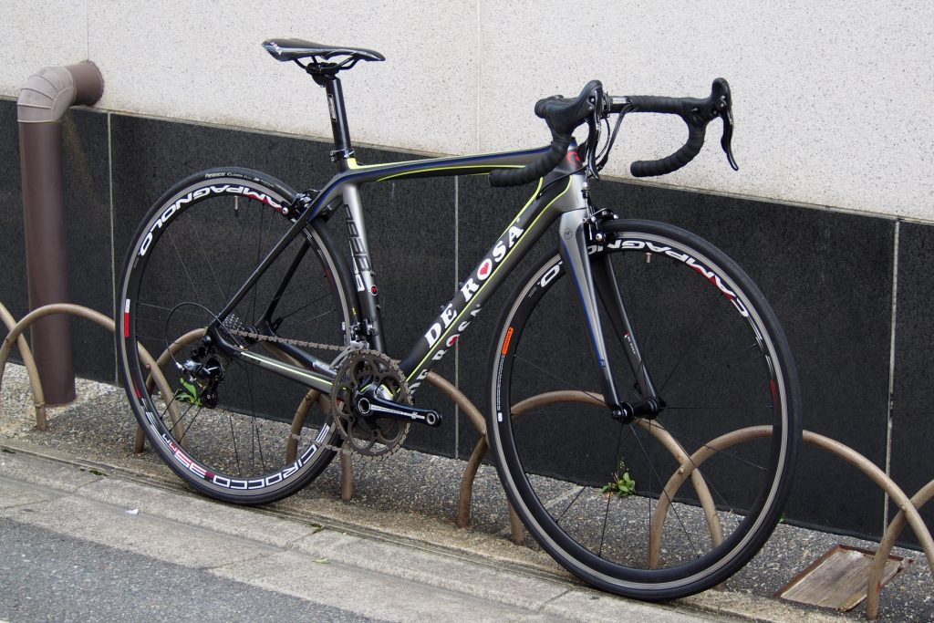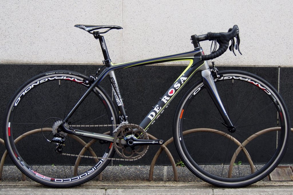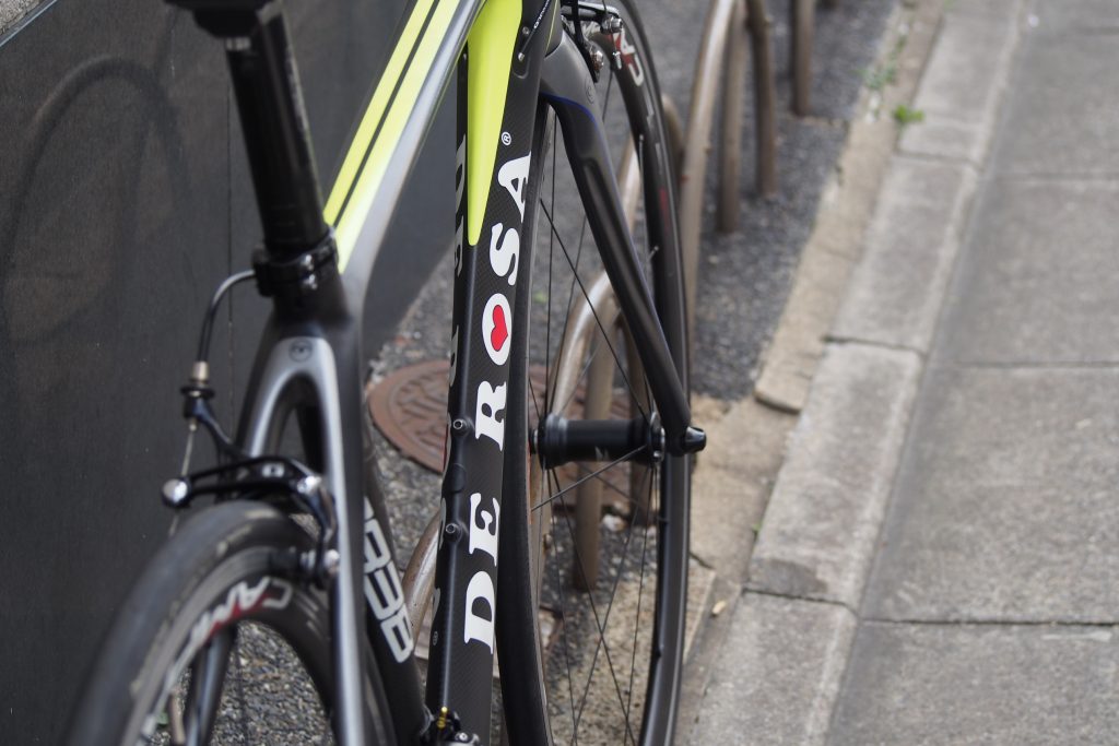 艶めかしく伸びるトップチューブのシルエットはDEROSAの其れです。